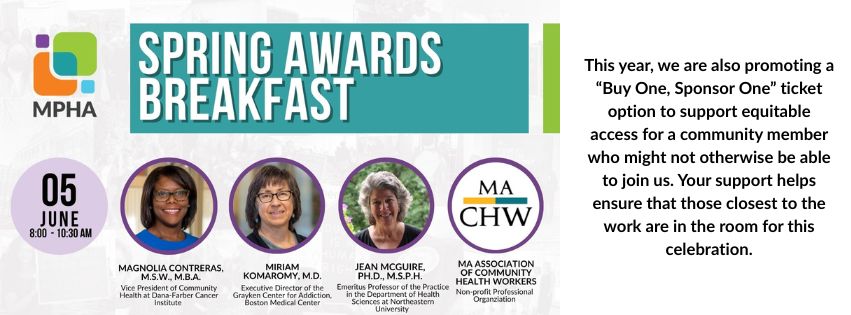 The Massachusetts Public Health Alliance (MPHA) is thrilled to be holding its 24th Annual Spring Awards Breakfast on June 5, 2026 at the John F. Kennedy Presidential Library and Museum. We will be recognizing a few of the Commonwealth’s most accomplished public health champions! Join us for this event that brings the health and public health communities together in celebration and supports MPHA’s health equity agenda.